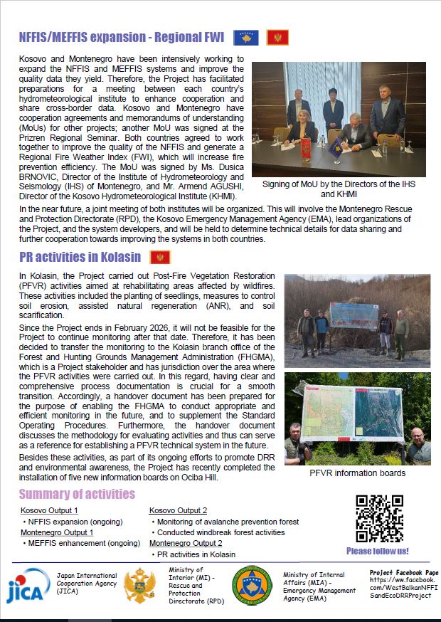 Në kuadër të këtij buletini që ka për qëllim të informojë për aktivitetet kryesore të zhvilluara në kuadër të projektit përfshihet edhe aktiviteti për nënshkrimin e Memorandumit të Mirëkuptimit në mes të Institutit Hidrometeorologjik të Kosovës dhe Institutit të Hidrometeorologjisë dhe Sizmologjisë të Malit të Zi.