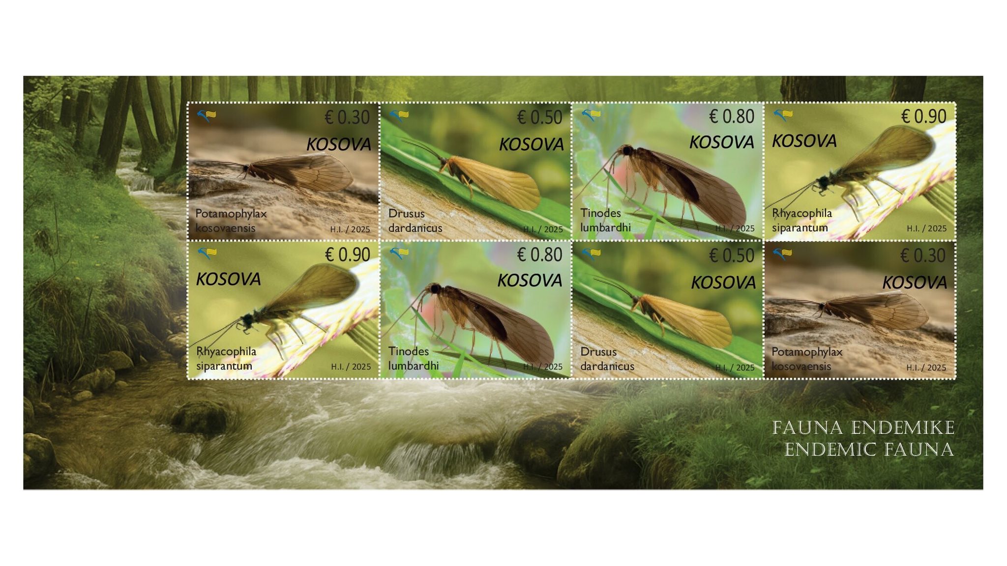 Posta e Kosovës, përmes Filatelisë së saj, me rastin e Ditës Botërore të Lumenjve, ka emetuar emisionin më të ri të pullave postare “Fauna endemike”. Gjetja dhe përshkrimi i katër llojeve të reja të insekteve ujore endemike, për territorin e Kosovës përbën një arritje të veçantë në fushën e shkencave natyrore dhe të ruajtjes së biodiversitetit. Ky zbulim është rezultat i një pune të përkushtuar ekipore të studiuesve të entomologjisë, të cilët, përmes kombinimit të hulumtimeve në terren dhe analizave laboratorike, kanë arritur t’i identifikojnë këta organizma të rrallë dhe shumë të rëndësishëm. Përveç vlerës së tyre shkencore, këto gjetje përfaqësojnë edhe një thirrje për rritjen e ndërgjegjësimit mbi mbrojtjen e ekosistemeve të brishta ujore në Kosovë.